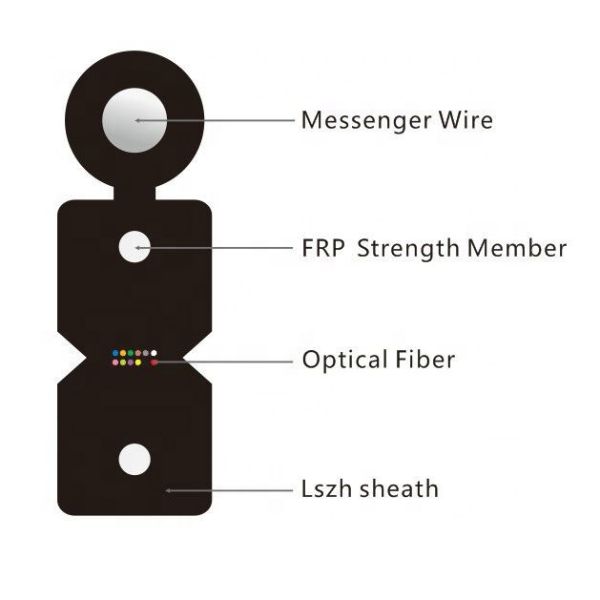 The structure is1-4 colored fibers colored fiber combined with two FRP (or steel wires),which can protect the fiber inside by providing sufficient tensile strength and good resistance to lateral crushing.Drop cable is designed for last-one-mile in the FTTx network, enhancing the accessibility to the fiber and maximizes the installation work ability.High tensile of the diameter 1.0mm steel wire meet the requirement of self-supporting and reducing the installation cost.Two parallel FRP/ steel wire strength members ensure good performance of crush resistance to protect the fiber.Novel flute design, easily strip and splice, simplify the installation and maintenance.
